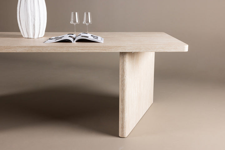 Dank seines robusten Designs bleibt der Esstisch Skagen auch bei größeren Runden stabil und zuverlässig. Die rechteckige Form schafft eine großzügige Ablagefläche für Speisen, Getränke und Dekorationen und ermöglicht ein komfortables Zusammensitzen von bis zu zehn Personen.