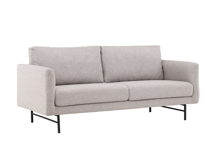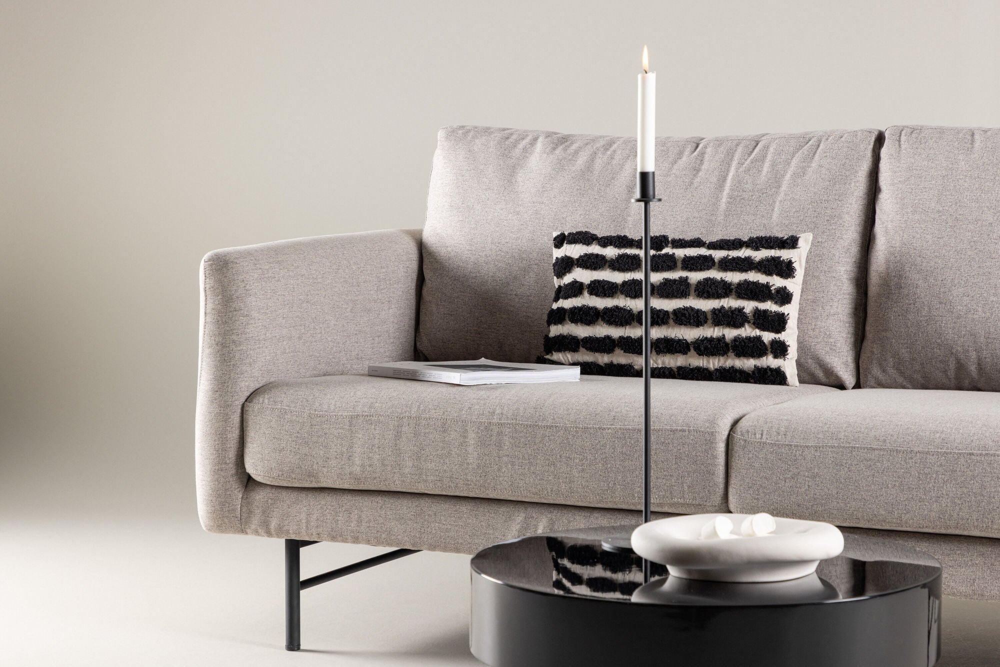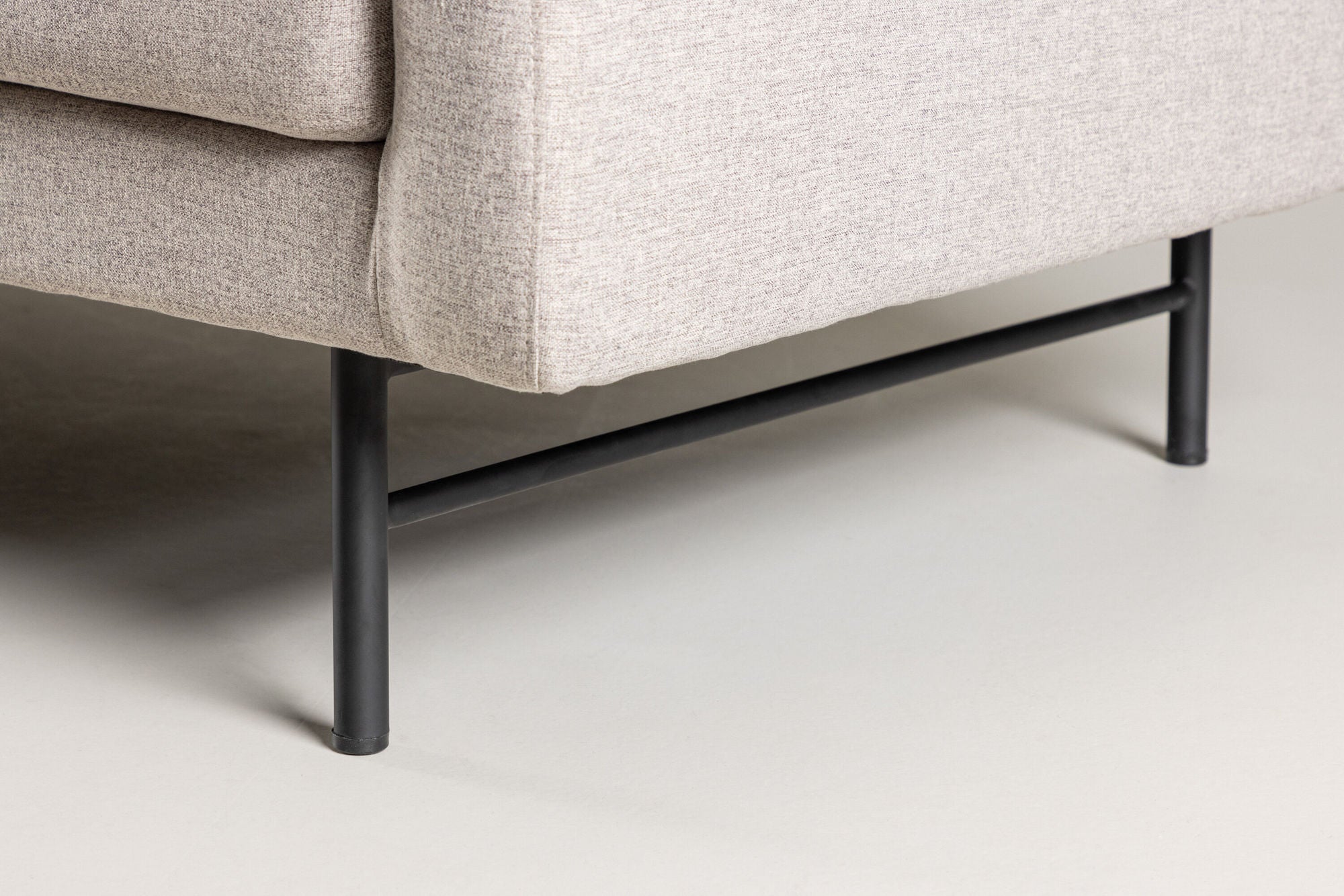 Gefertigt aus hochwertigem Polyesterstoff und ergänzt durch schlanke schwarze Stahlbeine, vereint das Sofa Funktionalität mit klarer Formensprache. Es wird so nicht nur zum gemütlichen Rückzugsort, sondern auch zu einem ausdrucksstarken Designelement in Ihrem Wohnzimmer.