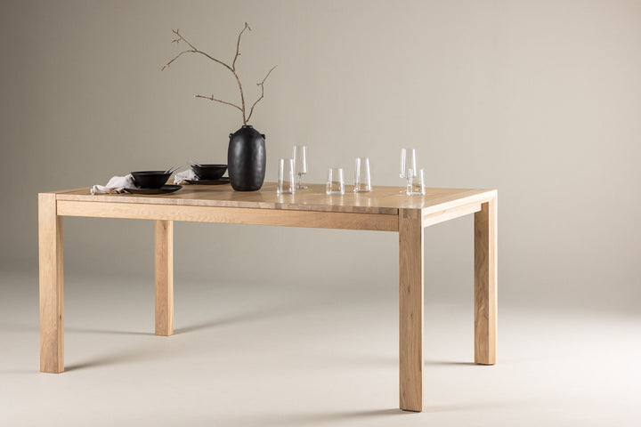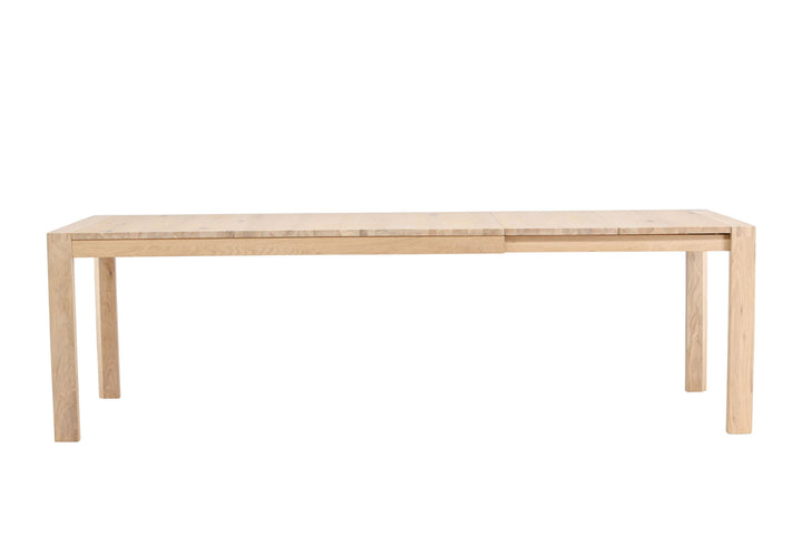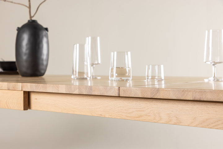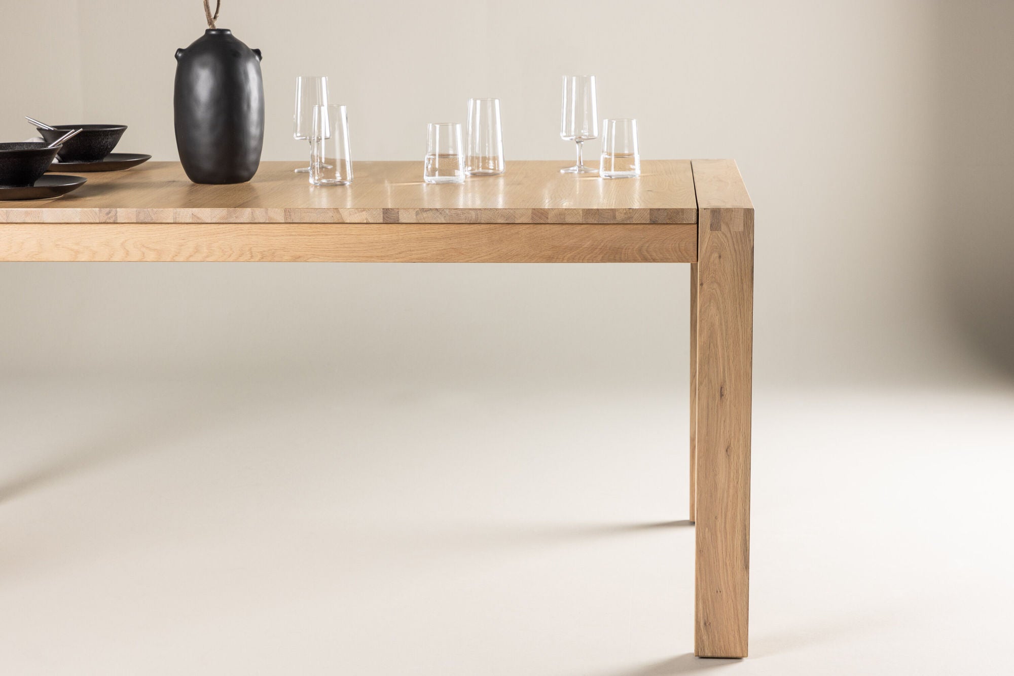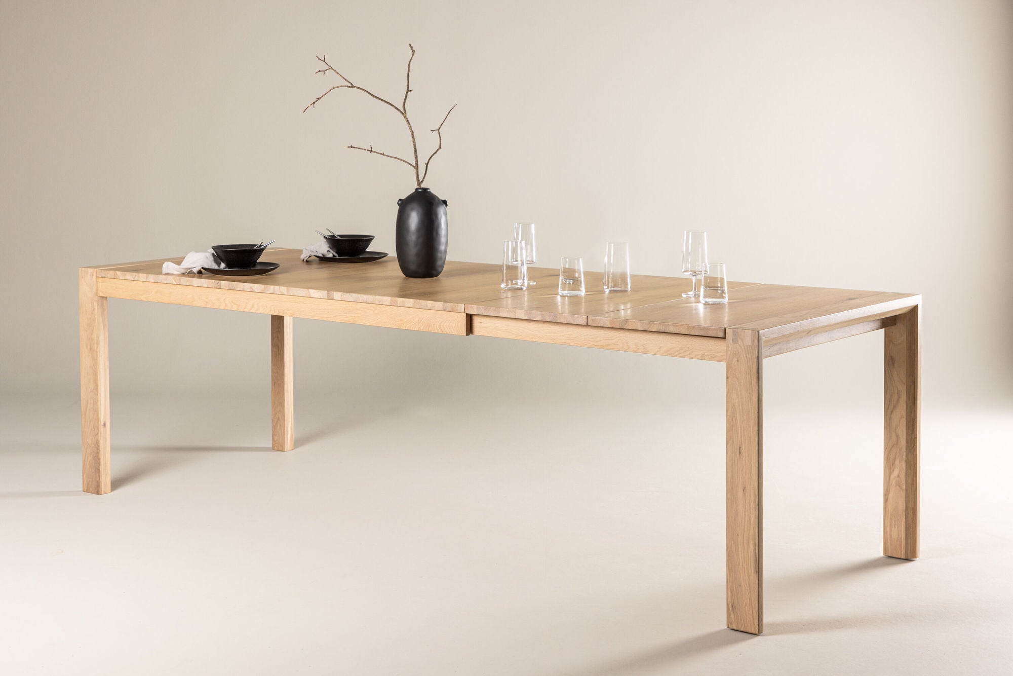 Der rechteckige Esstisch Slider überzeugt mit seiner hellen, Natur veredelten Eichenoptik und vereint stilvolles Design mit hoher Funktionalität. Mit einer Grundlänge von 170 cm und zwei Ansteckplatten à 40 cm lässt sich der Tisch flexibel auf 210 cm oder 250 cm erweitern – perfekt für den Alltag wie auch für festliche Anlässe.