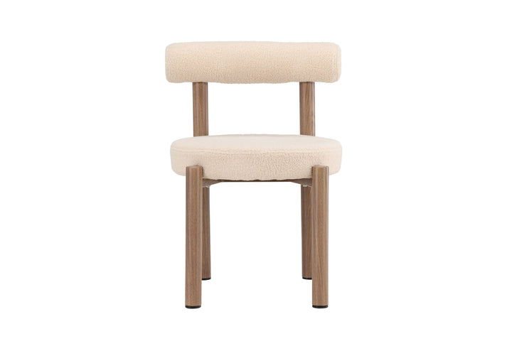 Tillo Esszimmerstuhl 2er-Set – Stahl in Holzoptik / Weißer Bouclé