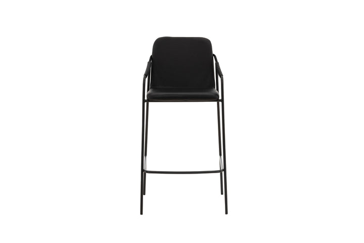 Der Barhocker Tvist überzeugt mit modernem Design und höchstem Sitzkomfort – perfekt für das zeitgemäße Zuhause. Die weich gepolsterte Sitzfläche und die komplett bezogene Oberfläche in schwarzem PU-Leder verleihen dem Hocker eine elegante und zugleich pflegeleichte Ausstrahlung.