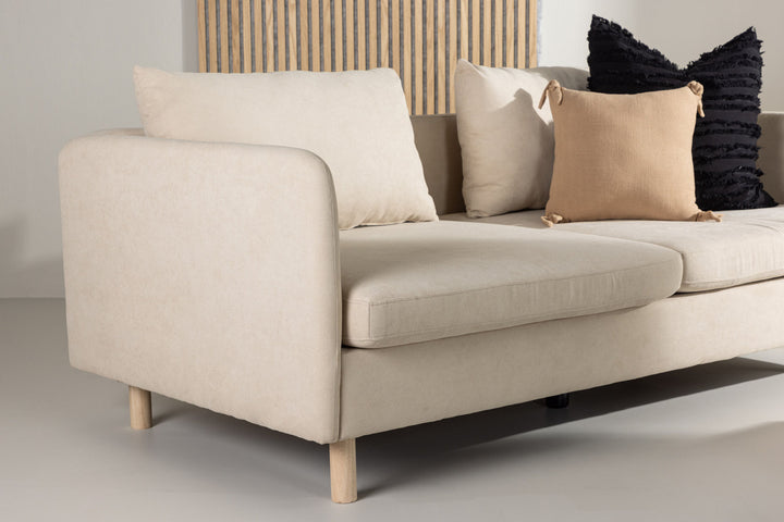 Entdecken Sie mit dem Zero Sofa ein neues Level an Komfort und Stil. Dieses elegante 3-Sitzer Sofa in sanftem Beige besteht aus hochwertigem Polyester, das sowohl strapazierfähig als auch angenehm weich ist. Die hellen Holzbeine verleihen dem Sofa eine moderne Note und schaffen gleichzeitig ein Gefühl von Leichtigkeit und Weite im Raum.