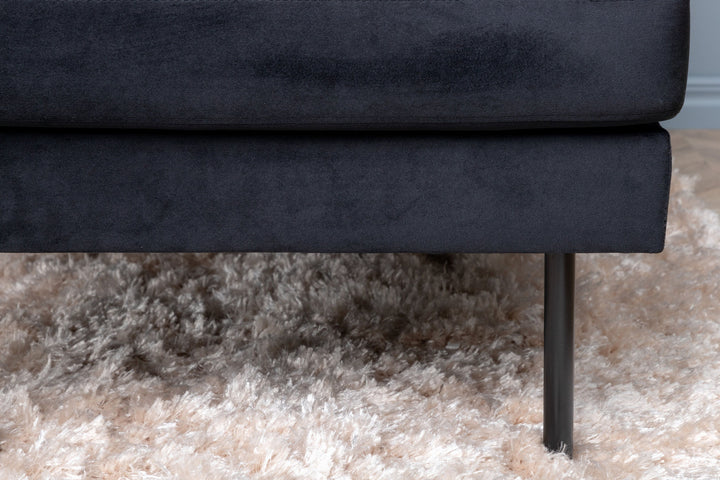 Das großzügige Design mit zwei Divans und klaren, nordischen Linien bietet ausreichend Platz für die ganze Familie. Schmale Beine aus schwarzem Metall runden das moderne Erscheinungsbild stilvoll ab und verleihen dem Sofa eine leichte, elegante Note. Hier vereinen sich Komfort und Design zu einem echten Highlight in Ihrem Wohnzimmer.